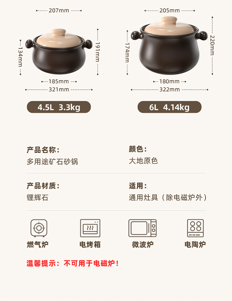 材质: 陶瓷(含45%+锂辉石)